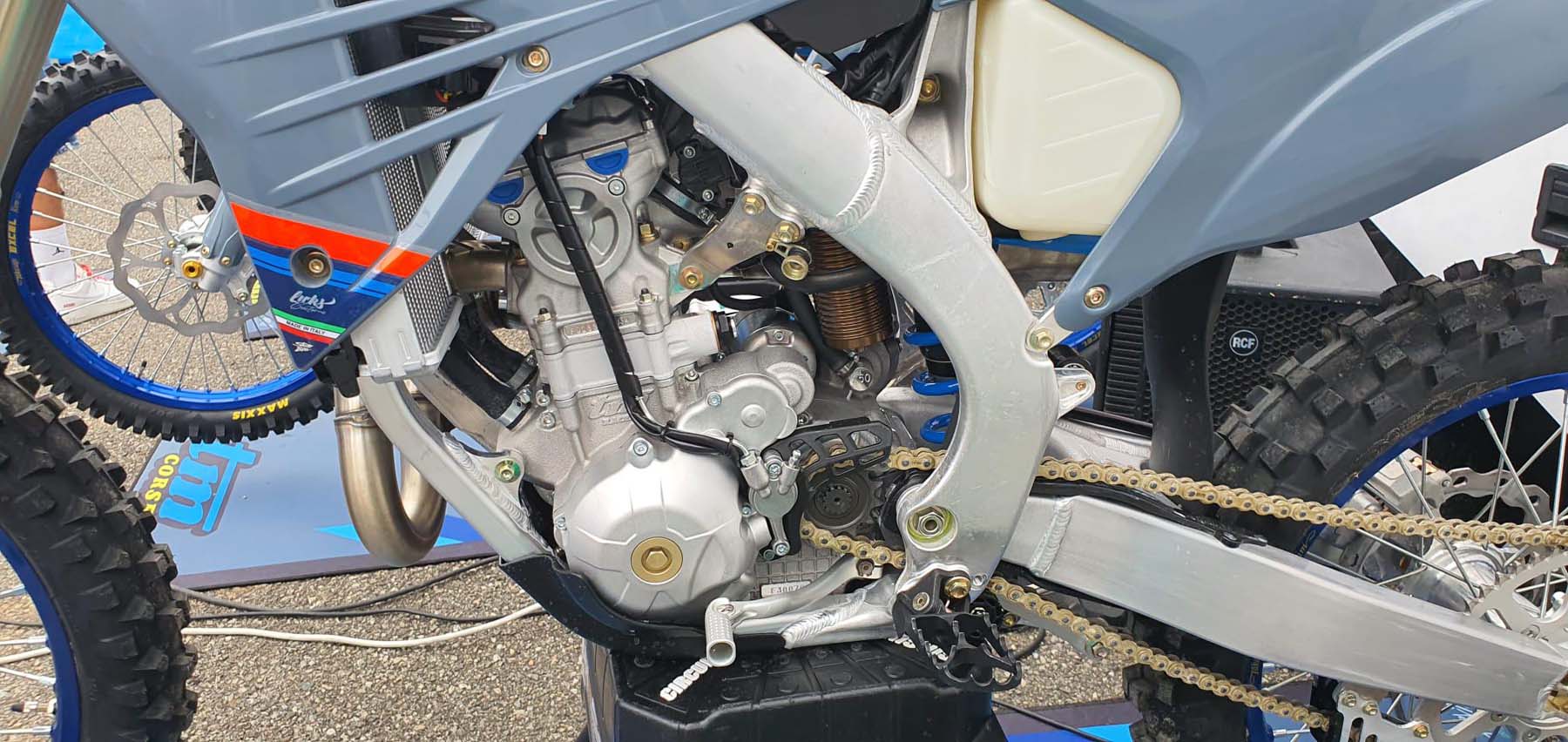 Bei den CORSE 250-300 2T/4T und 450 4T Enduro-Versionen sowie allen MX-Modellen wurde die Kupplung komplett neu entwickelt. Die Kupplungsdruckplatte wurde zur Verbesserung der TM-Leistung entwickelt und besteht aus Stahl. Sie ist mit einer Tellerfeder ausgestattet, die eine bessere Modulation während der gesamten Bewegung ermöglicht und gleichzeitig eine hervorragende Haltbarkeit gewährleistet.